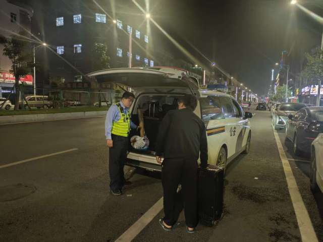 10月28日23时40分,惠州市博罗县公安局交通管理大队执勤警员开展日常巡逻工作,巡至园洲镇园洲大道时,发现一名男子带着多个行李站在路边,在深夜中略显窘况,警员立即上前对其询问情况。